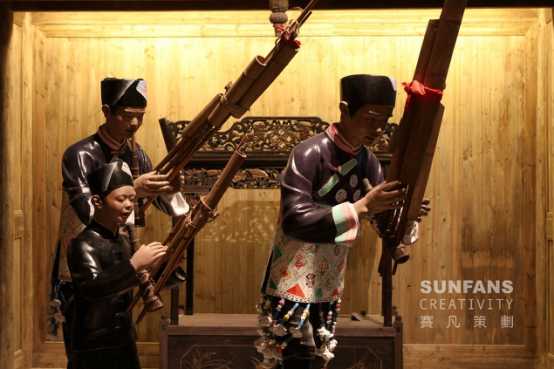 廣西少數(shù)民族眾多,世居民族達(dá)到12個(gè),因其地理位置的特殊性,與東南亞各民族的文化交流頻繁,帶有明顯的地域性。博物館在展示上以大量場(chǎng)景再現(xiàn)的方式,還原了少數(shù)民族生活勞作的畫面,生動(dòng)自然地體現(xiàn)了廣西眾多民族的特色。在視覺上采用了少數(shù)民族自有的顏色和元素進(jìn)行細(xì)節(jié)裝飾,給人留下深刻的印象。