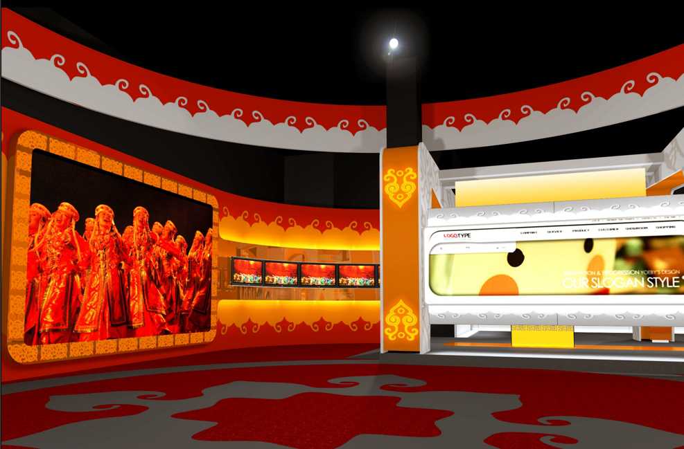 設計師通過歷史不斷發(fā)展的時代對比形式,利用高科技的多媒體技術、圖片,實物模型以及沙盤等多種展現(xiàn)手法,搭建了此次的內(nèi)蒙古60周年歷史畫卷。從大廳的入口展望,整個展廳呈現(xiàn)大自然的明亮形象,可以讓人一下想起內(nèi)蒙古的草原,生機勃勃的形象。吊頂?shù)脑O計直接延伸到每個主題展區(qū),主題區(qū)的LED燈光,保證了每個區(qū)域的采光效果,聯(lián)合展示內(nèi)容或視頻,或實物,都讓展示效果達到和諧。